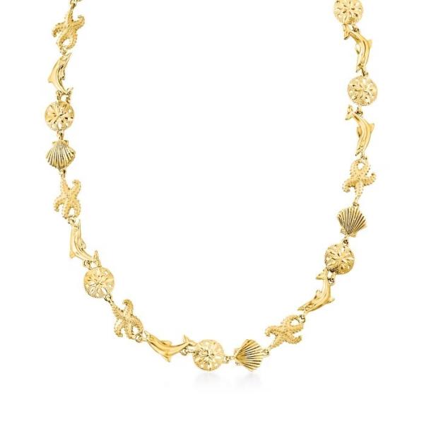 18kt Gold Over Sterling Silver Sea Life Link Beautiful Necklace For Women