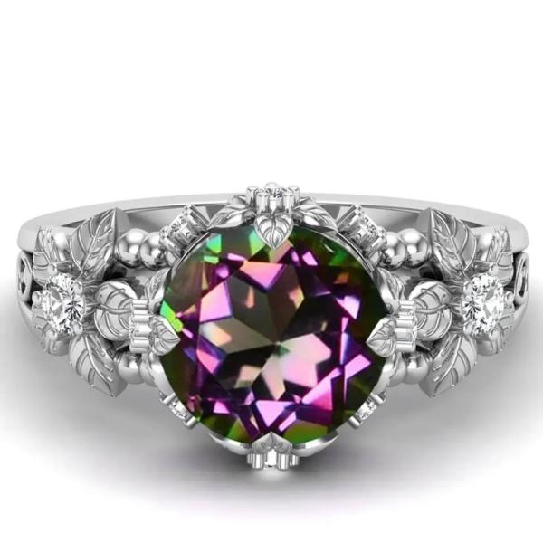 14K Gold Plated Sterling Silver Vintage Art Round Cut Mystic White Topaz Gemstone Engagement Rings
