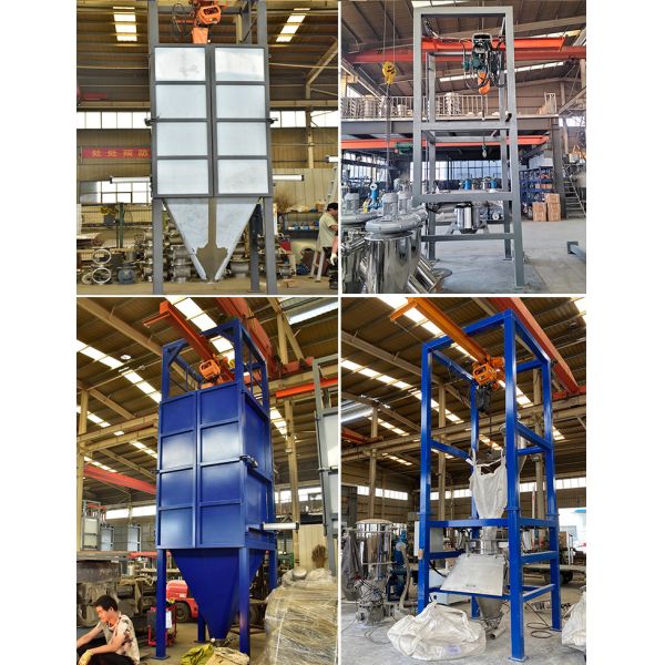 4. The discharge port of ton package feeding station can be connected with: rotary discharge valve, hopper, bin, manual feeding station, vacuum feeder, mixing tank, etc.
