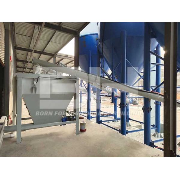 BH Automatic dry mortar plant on the basis of semi-auto dry mortar plant, increases the raw material storage system, automatic weighing system and premix tank, that no need manual weighing, and improves the efficiency. Depending on the configuration, capacity at 10-15T/H, with an annual output of 30-100,000 tons per year. Occupation area: 60-100m² , Height: 8-13 m, Worker required: 3-4 persons.