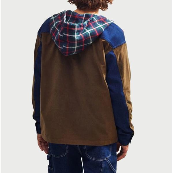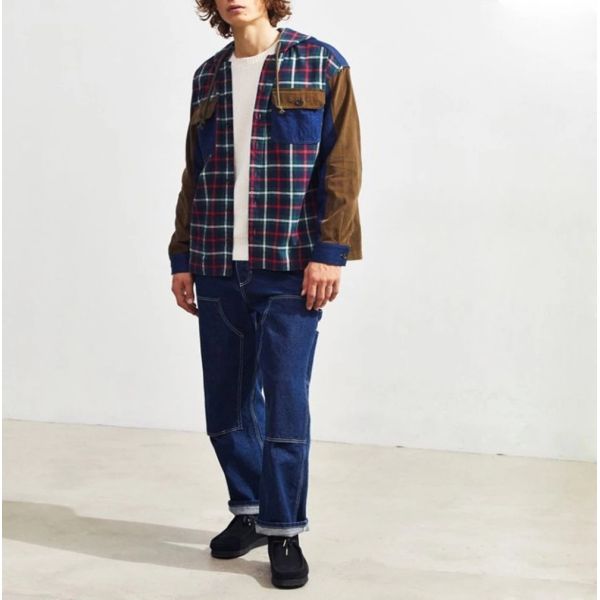 New design stylish shirt blocked hooded 100% cotton fashion paid shirt for men