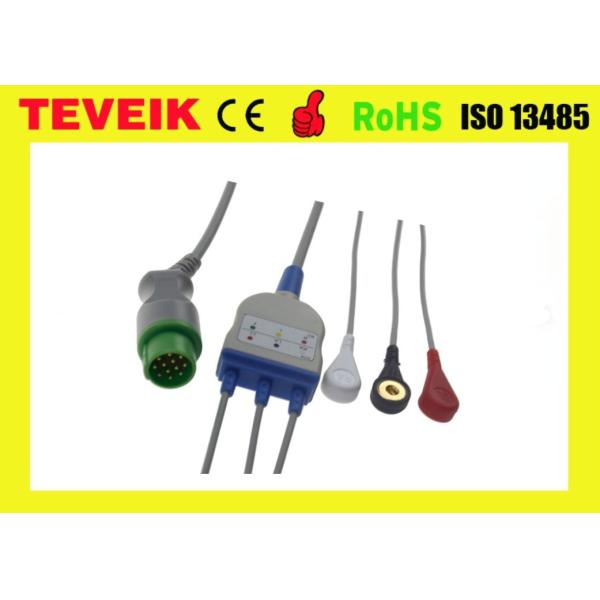 Bruker One piece 3 leads ECG cable with snap,AHA,round 12pin
