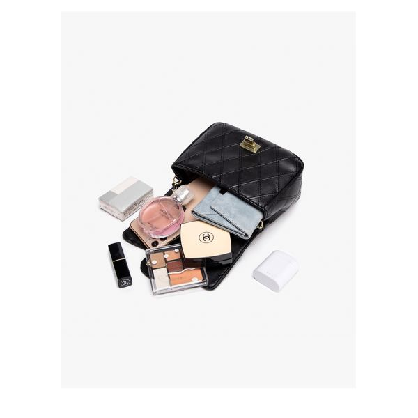 Mini Female Crossbody Bag 20cm Black Purse With Gold Chain