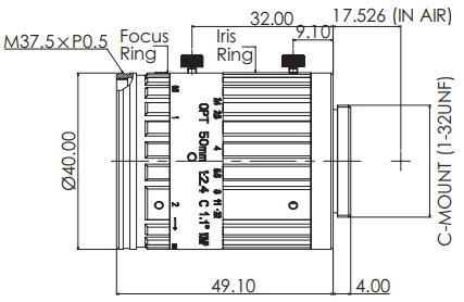 Fixed Focal Length Lenses 10MP F2.4-F22 WD 550~∞ Focal Length 50mm 0.13kg OPT-C5024-10M