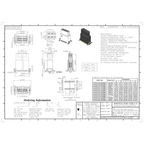 SYFEC275-B01 1.27mm SMC Female Connector Vertical ...