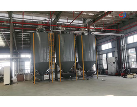 The system is designed for the automatic feeding of multiple extruders. The storage and transportation of materials are carried out in closed stainless steel containers and pipes. Some dust removal measures are taken to effectively prevent dust pollution and keep the workshop clean. The control system is controlled by imported PLC, and the main electrical components are imported famous brand products to ensure the long-term, reliable and efficient operation of the whole system. The control system can automatically or semi automatically complete the whole feeding process. The simulation screen can display the operation status of each part of the system in real time through the indicator light, and can flash the alarm for the failure part to attract the attention of the operator. The extruder adopts the combination of vacuum feeding and screw feeding. The silo is equipped with two level meters. When the lower level meter shows that there is a lack of material, the feeder will work automatically to fill the material in the large silo to the small silo. When the upper level meter shows that the material is full, the feeder will stop working and temporarily stop feeding. In order to ensure the normal and continuous operation of the extruder, a 50L small hopper is added above the extruder and a level gauge is equipped respectively. If any one of the six level gauges shows a lack of material, the screw feeder will automatically start to work and start feeding until all the six level gauges light up to show that the material is full, and the screw feeder will stop working; if one level gauge is short of material, the screw feeder will start working again, The whole feeding process runs automatically under the control of PLC.