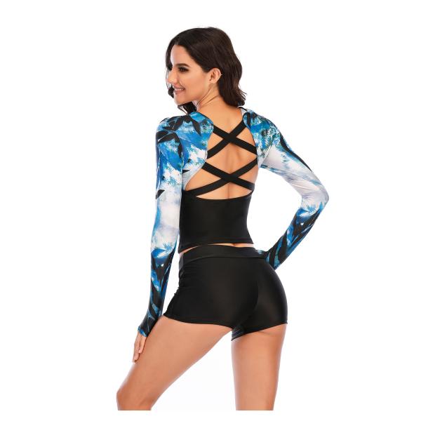 | Product Name:: | Two Pieces Swimwear Cross Back Long Sleeve Printed Tops Rash Guard Back Swimming Pants |