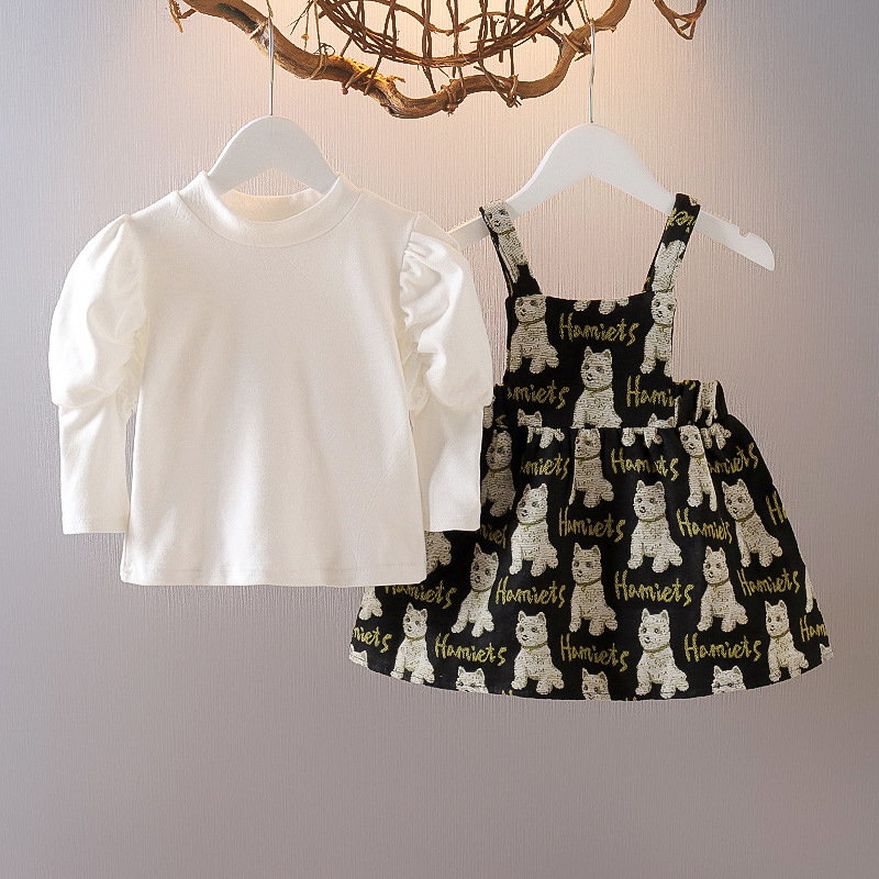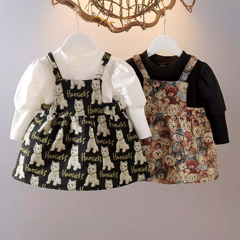 Small and medium-sized Children's Outfit Sets baby dresses cartoon bear print design suit