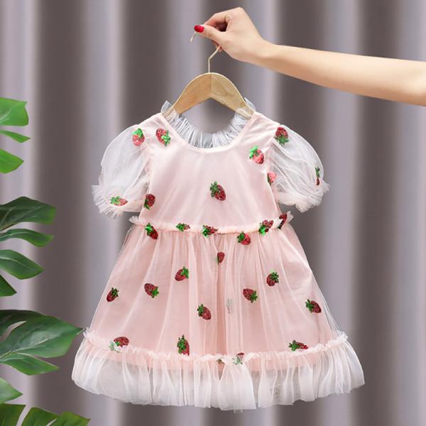 Wholesale children's dress clothing strawberry sequined mesh girl princess dress