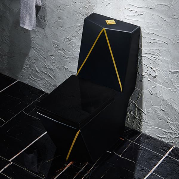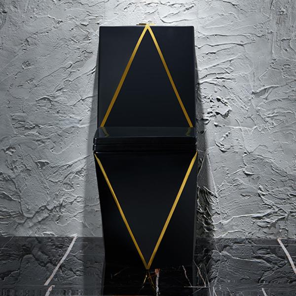 One Piece Washdown Sanitary Ware Toilet Black Gold Graphic Design