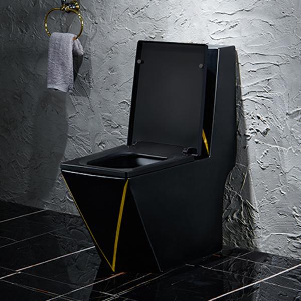 Graphic Design Ceramic Sanitary Ware WC Once Piece Black And Gold Toilet With Integrated Sanitary Ware