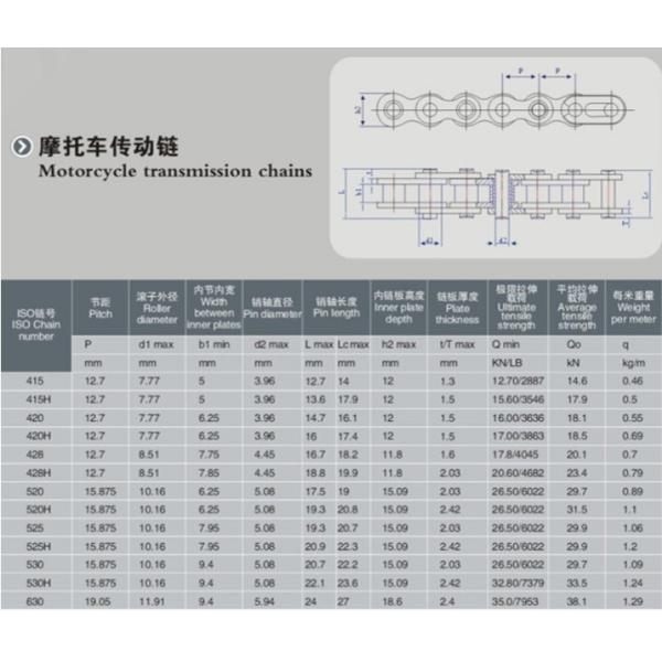 | Model No. | 428-136L 100-200CC Motorcycle 520V-120L 200-600cc Motorcycle 525V-120L 400-800cc Motorcycle 530V-120L 800-1500cc Motorcycle |