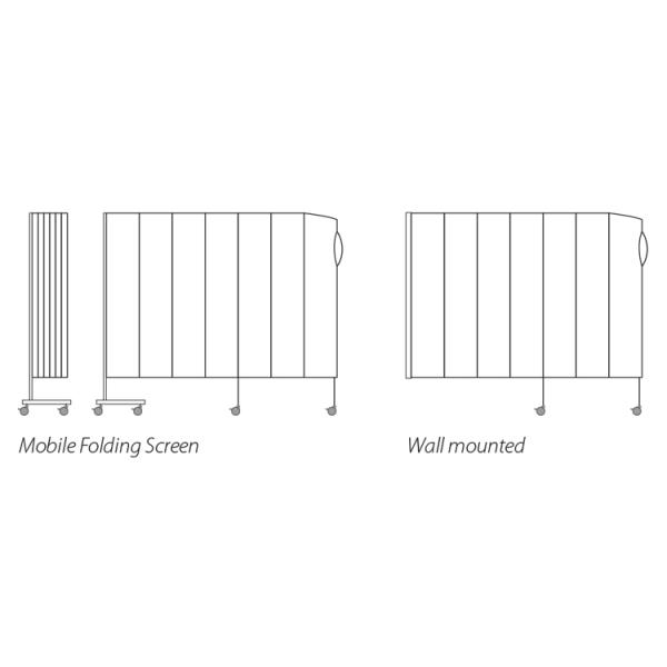 The screen can be mounted on a trolley to provide mobile privacy when necessary.