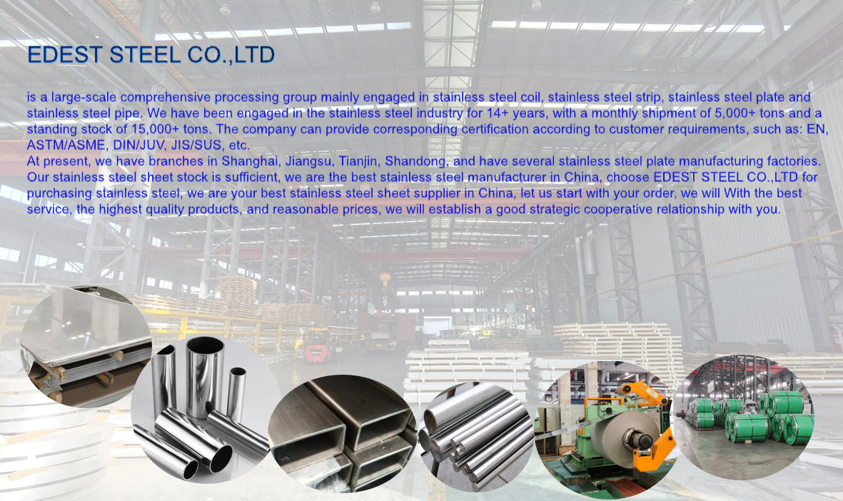 EDEST STEEL CO.,LTD's stainless steel products include 200, 300, 400 series stainless steel plate/coil/sheet/strip/pipe. So as to meet JIS, ASTM, AS, EN, GB international supply standard conditions. There are 2B, BA, 8K, HL, titanium gold, etching, embossing and other surface treatment processes, support customization, reasonable price and high quality. We implement strict quality inspection to ensure that our products are 100% qualified, and our strong logistics and transportation capabilities export our products to all over the world. Welcome to EDEST STEEL CO.,LTD to purchase stainless steel plate!