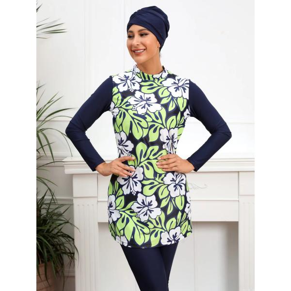 Muslim women's three-piece swimsuit fully covers conservative women's hooded swimsuit with chest pad, and the top is digitally printed with dark blue solid color trousers, which is very layered and particularly energetic after wearing it. This three-piece suit of Muslim bouquigny ladies' conservative hooded trousers is made of nylon, which is very elastic, wrapped and very comfortable and breathable, and can be used for yoga, sports, fitness, any form of sports or daily use. Very comfortable, Muslim swimsuit has moisture absorption and perspiration, breathability and superelasticity. Four sizes of S, M, L and XL are suitable for most or customization. Signs/labels/labels are transferable, and the minimum order quantity is 10 pieces or mixed. The more quantity, the cheaper the price. The manufacturing time is about 3-7 days (we can also accept urgent orders if you have urgent needs). Accept OEM (we can customize it for you) packaging details, factory standard packaging or custom packaging, and then external cartons. Payment method: T/T letter of credit.three piece swimsuit