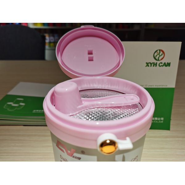 Food Grade Pink Color Printing with Plastic Spoon for Milk Powder Packaging Empty Tin Cans