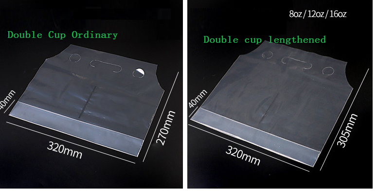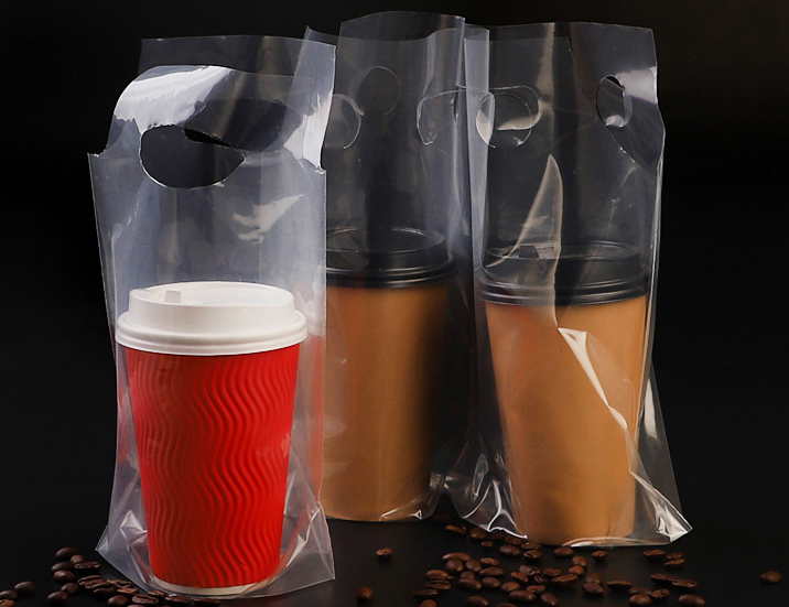 Paper cup transparent plastic packaging bag, disposable coffee milk tea beverage cup takeaway packaging bag