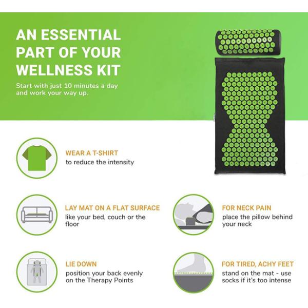5.The cushioned foam pad is large enough to fit your back, this set includes a pillow covered in acupressure points for neck support and more holistic pain relief.