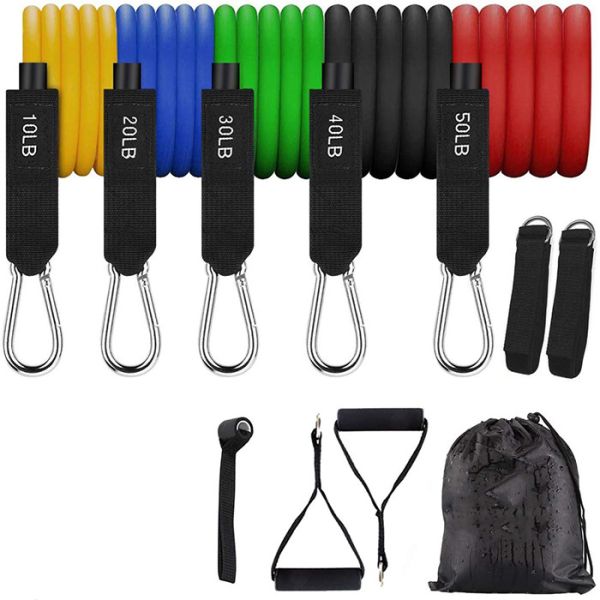 4. This resistance band set includes five exercise bands, one door anchor, two cushioned handles and user manual to allow you to perform the widest variety of resistance training exercises possible