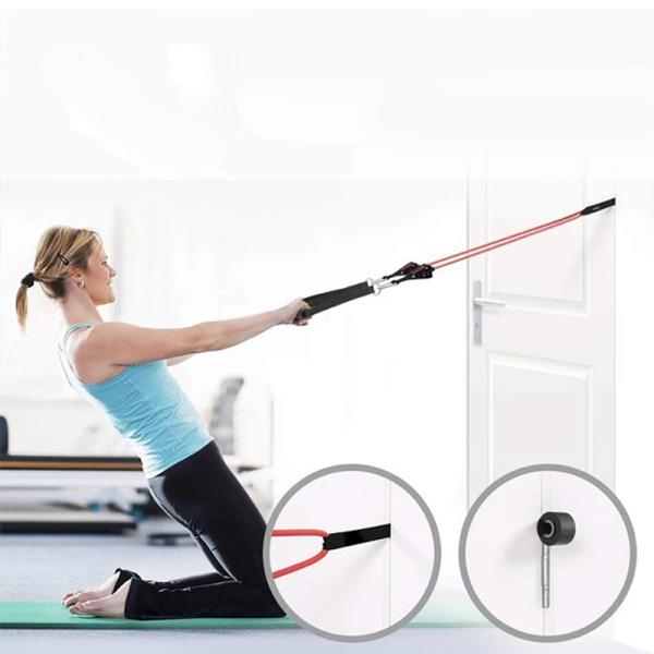 stackable resistance bands, two handles, door anchor, carrying bag