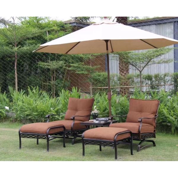 Aluminum Sun Bed Lounger Set With Belt Weaving And High Backrest -
