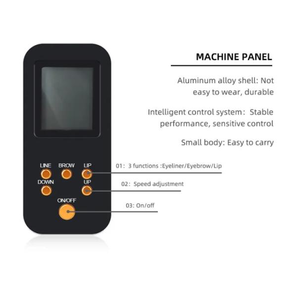 Feature | 1. Digital panel has 3 functions:eyebrow,eyeliner,lip 2. Small and exquisite,convenient for operation 3. Many different cartridge needle can choose,suitable for PMU and