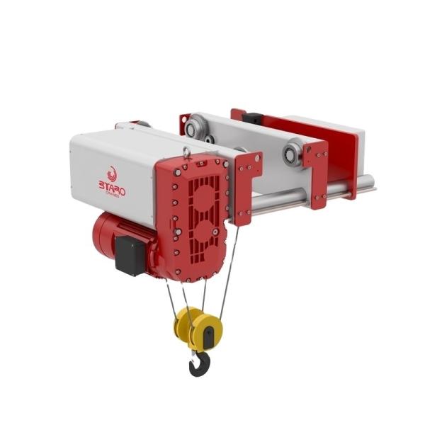 Wire rope hoists are wildly used for lifting materials in factory or construction sites. utilize wire rope as a hoisting medium, wrapping the wire around a grooved drum to conduct the lift. Wire rope could be used as a hoisting medium in several industry sectors. In demanding or intense lifting applications, wire rope hoists are the best choice.The main parts are motor, wire rope,drum, geared motor, limit switch, electric control box, remote control. Motor brand can be customized.