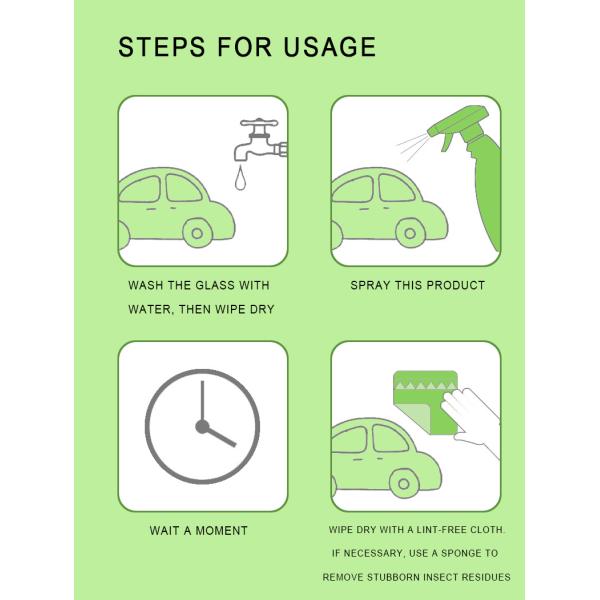 | Feature | Decomposes oil stains, Clear vision, Neutral formula, Increase light transmittance, Doesn’t hurt the glass, Remove stains |