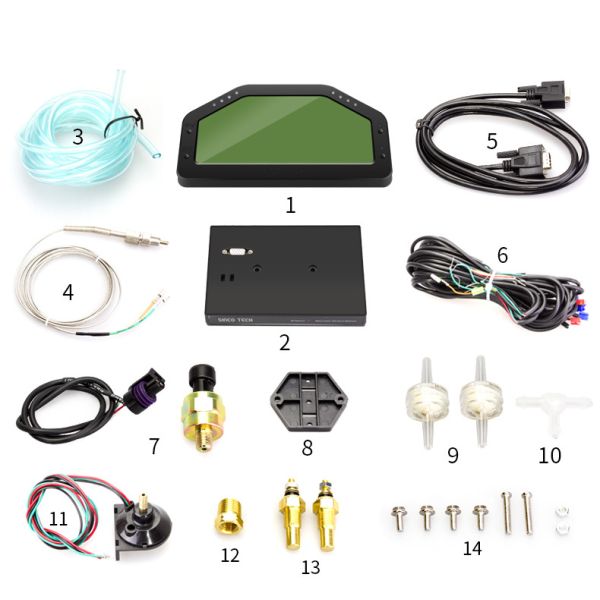 The DO908 dashboard consists of the Monitor, the Data Processing Unit(DPU), and several different types of Sensors.the display connect with the DPU by wire. DPU backside install to dashboard by screws .