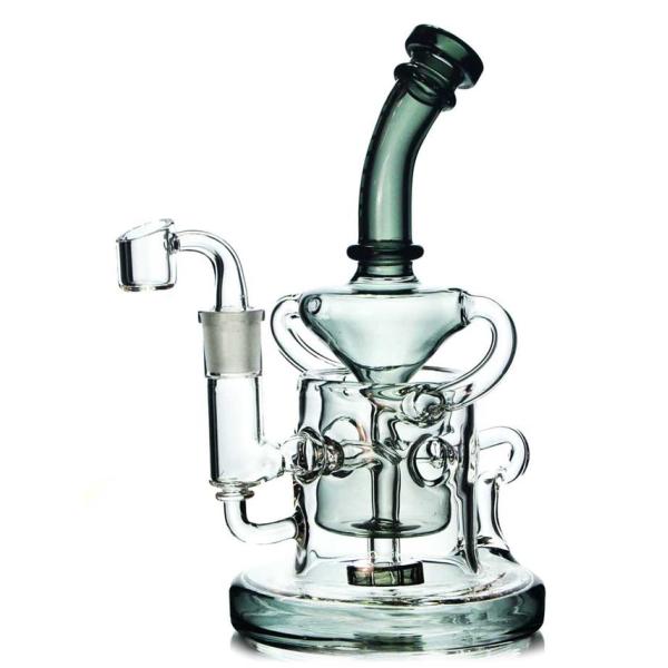 This rig will easily become your new daily driver for many reasons. The wide base fills completely with water for a nice sturdy sit down. The showerhead perc blast bubbles up through the body and into the recycling tubes for a perfect swirl. The recycling chamber is separated from the body so you can see it all happening in perfect harmony. Watch as the water flows through the body and up the arms, and swirl down the funnel back into the perc
