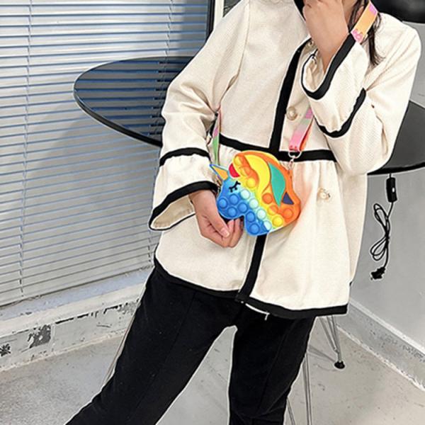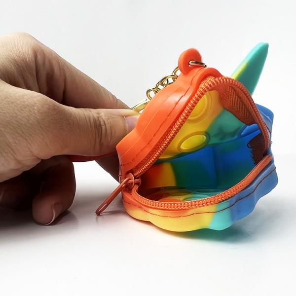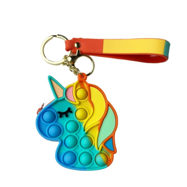 OEM ODM Kids Silicone Fidget Toys , Rainbow Unicorn Popper Purse