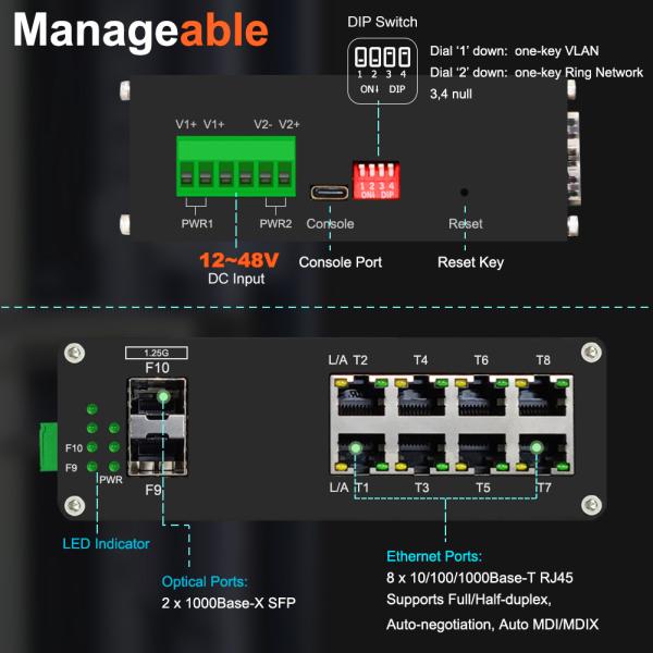 Industrial L2+ 8-Port 10/100/1000T To 2-Port 1000X SFP Fiber Managed Network Switch