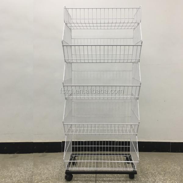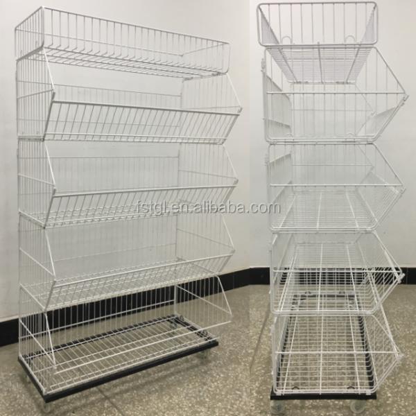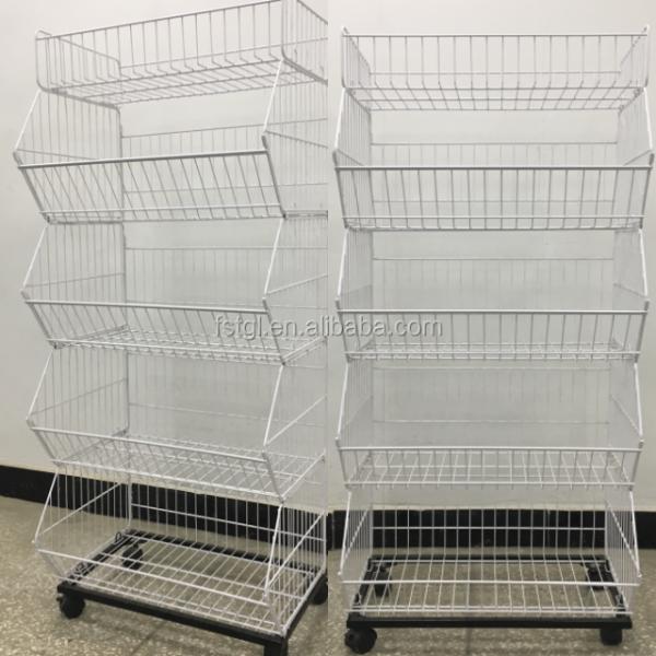 bottom with wheels, wheels can be fixed Good quality and durable when being used to display goods. To help