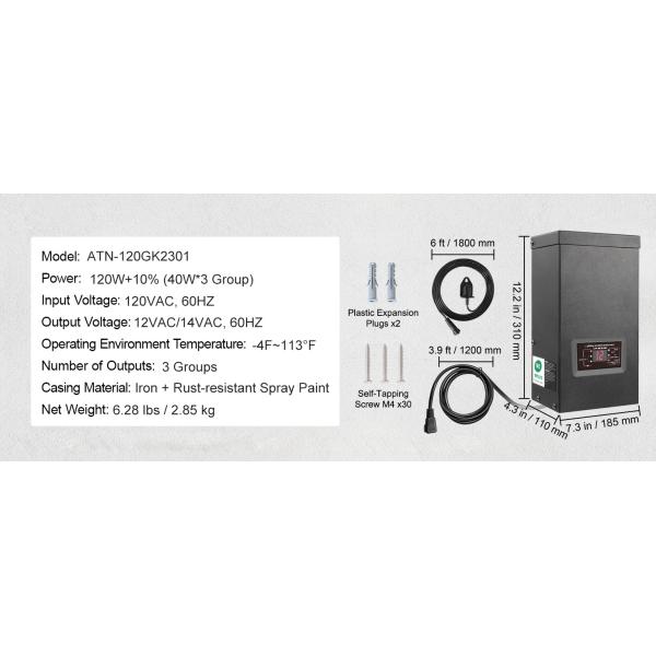 120W Low Voltage Landscape Transformer with Timer and Photocell Sensor, Waterproof Landscape Lighting Transformer, 120V AC to 12V/14V AC
