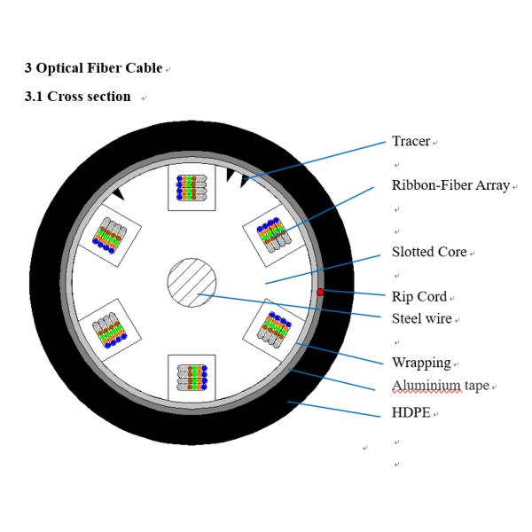 | Amount of fiber | Fibers per ribbon | Ribbons per slot | Slot No. | *Nom. thickness of sheath | Diameter (Appr.) | Weight (Appr.) |
