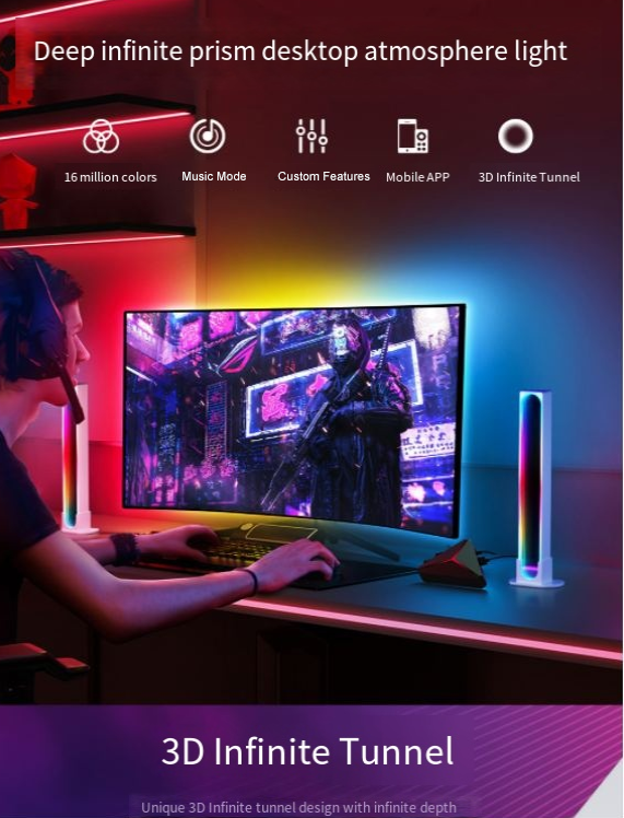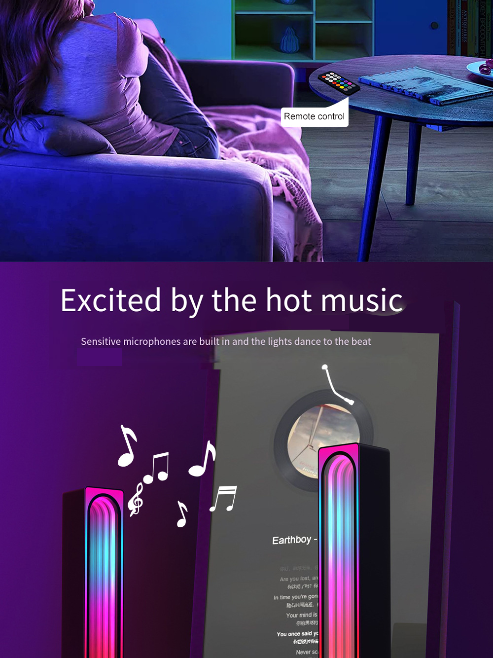 RGB Music Sync Color Changing Voice Sound Controlled Stand Lights with APP Rechargeable LED Rhythm Lighting for Home Party Game