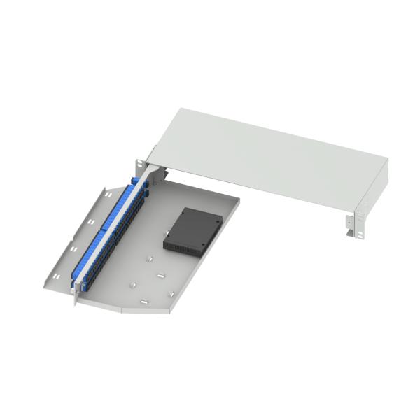 1. Standard 19 inch installation. 2. Swing-out drawer design. 3. Independent cable passage. 4. Patch panels with SC adapter. 5. Rotating structure, saving space and convenient operation. 6. Using mini splitter, compatible with multiple splitting ratios.