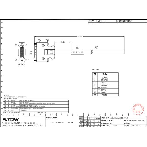 SCSI Cable assembly with high density connector with 1.27mm (0.050-inch) spacing Conforms to the American national standards institute (ANSI) specification Choice of bracket configurations includes: latch only or without rails and latch All plastic type available in 14, 20, 26, 36, 50, 50, 68,100 positions Insulator is made of polyester resin and glass fiber reinforced (UL 94-0) providing superior heat and chemical resistance Application to miniaturized electronic equipments.