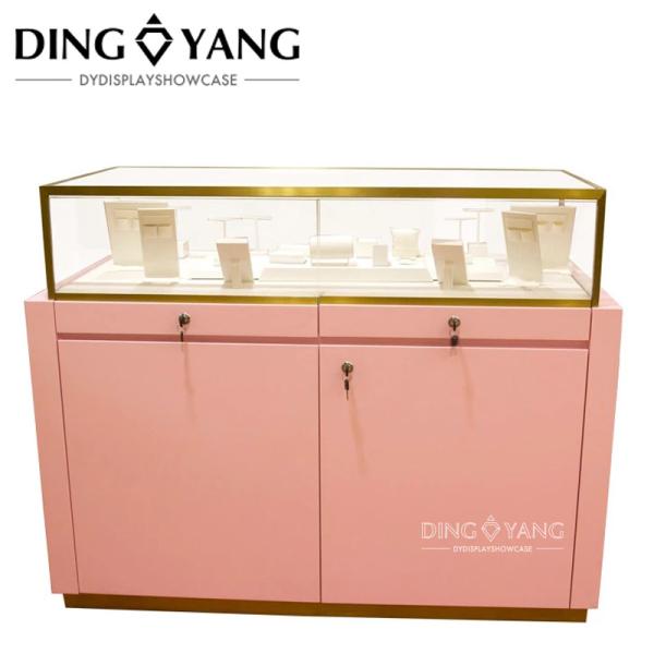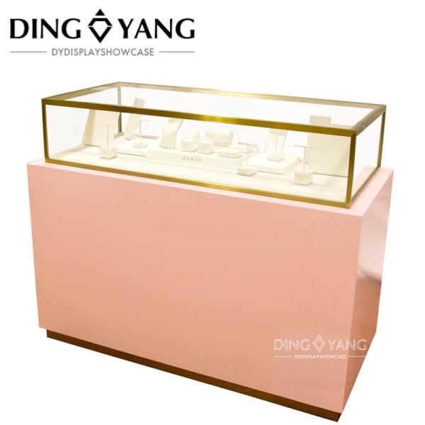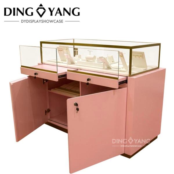 This Wooden Jewellery Showroom Counter usage for Jewelry Stores, High-End Shopping Malls, All Kinds Of Showrooms, High-End Clubs ,the tempered ultra-white glass is highly transparent, creating a fully transparent display effect. The high-quality stainless steel is processed with brushed and anti-fingerprint technology, and the main frame is golden - colored. And brand-specific LED lights that accurately showcase the true colors of the jewelry. The craftsmanship is high-end and fashionable, with a luxurious, simple and stylish, and high-end quality