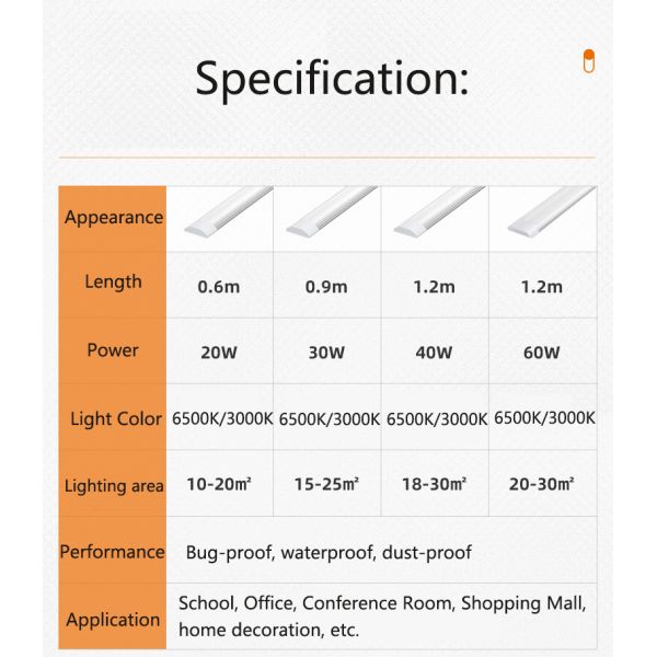36W/40W | 1200mm | 192pcs | 74mm | 25mm | 18-30m² |