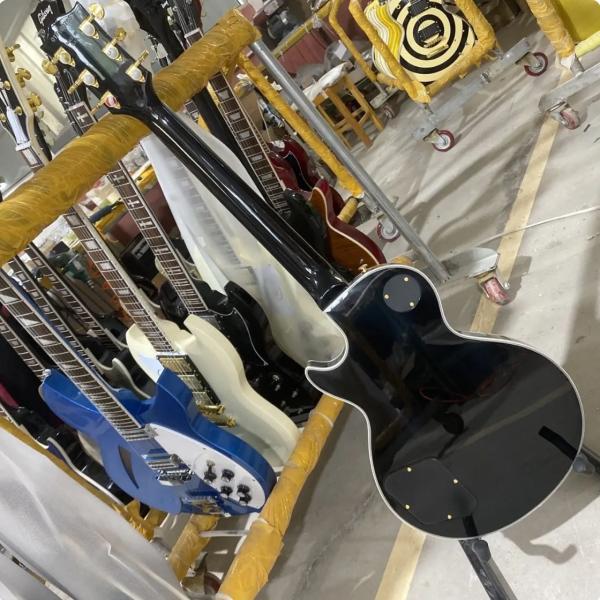 Buy Custom GB Style LP Les Paul Electric Guitar, Mahogany Body, Ebony Fretboard, Black Color, Golden Hardware, Fret Binding at wholesale prices