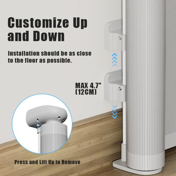 3.Easy installation and removal: Adhesive baby gates are generally quick and easy to install. Simply clean the surface, peel off the backing of the adhesive pads or strips, and attach the gate to the desired location. When it's time to remove the gate, gently peel off the adhesive pads or strips, and it should come off without leaving any residue or damage.
