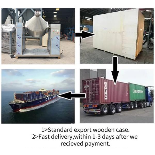 We offer international shipping options for our Double Cone Blender. These include: Air Freight, Ocean Freight, Express Delivery.We support customer freedom of choice.