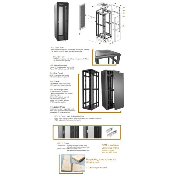 1.Aluminum profiled frame server cabinet, light weight and easy to transfer