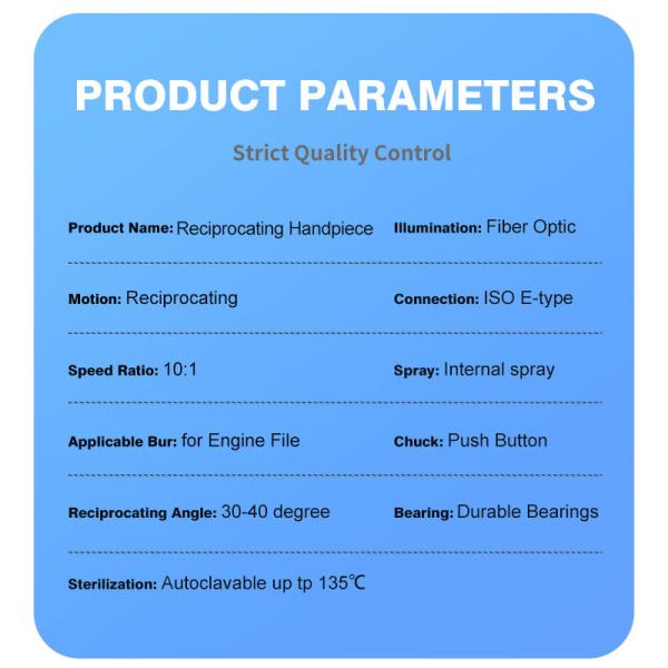 A specialized instrument used in root canal procedures is called a dental reciprocating endo handpiece, sometimes referred to as a reciprocating handpiece or reciprocating endodontic handpiece. It is intended to help dentists with the root canal system's cleaning, shape, and disinfecting procedures.