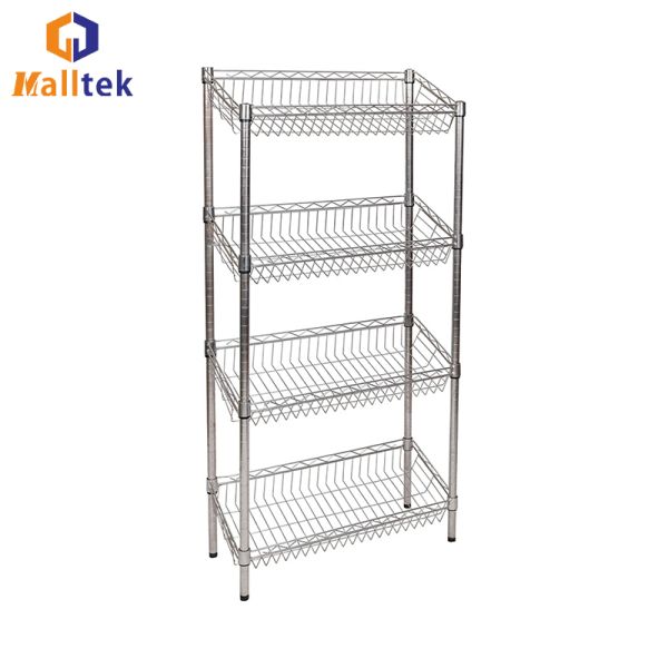 Stainless Steel Chrome Plated 4 Layers Wire Shelf Adjustable For Kitchen