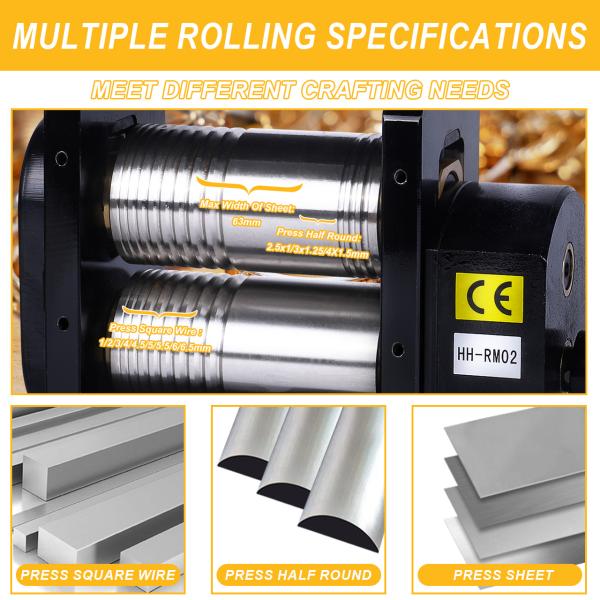 One of the standout features of this Rolling Mills Machine is its ability to press half round shapes. With specifications of 2.5*1mm, 3*1.25mm, and 4*1.5mm, it provides the user with options to create detailed patterns and shapes that are essential for high-quality jewelry making and metal forming. Whether you are working on a delicate piece of jewelry or a robust metal component, this machine offers the adaptability to meet your creative vision.