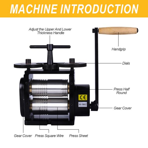 In summary, the Rolling Mills Machine is a versatile, durable, and precise tool, essential for any professional working with metal. Its combination of roller width, pressing options for half round and square wire, substantial weight for stability, and compact size make it a standout choice for those who require the best in metal forming equipment. Whether you are in the jewelry industry, metalworking, or manufacturing, this machine is designed to exceed your expectations and enhance your craftsmanship.
