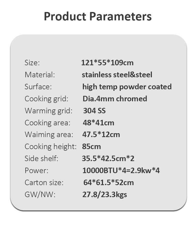 | Feature: | Easily Assembled, Easily Cleaned, Electronic Pulse Ignition, Piezoelectric Ignition, Trolley |