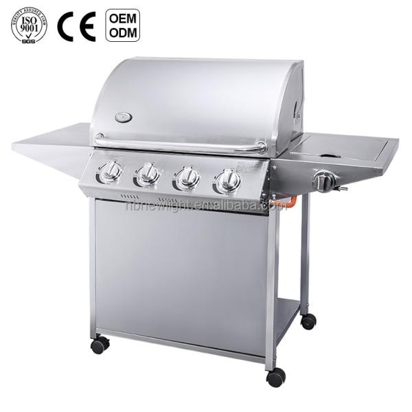 Easily Cleaned 4 1 Burners Stainless Steel Trolley Courtyard Outdoor BBQ Machine Gas Grill